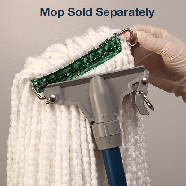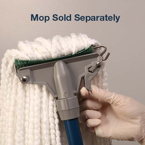 Corrosion-proof, ultra-lightweight, vinyl-covered aluminum or fiberglass, ergonomic handgrip handles with a permanently attached stainless steel spring yoke option that holds mops tight. Self-locking, threaded collar makes handle replacement easy too. Can be used with both narrow and wide headband mops. The stainless steel swing-away yoke simplifies mop loading and unloading by eliminating the need to thread mop through the holder. Unloading can be carried out without touching the dirty mop. The ergonomic handgrip option gives added comfort and reduces hand irritation.